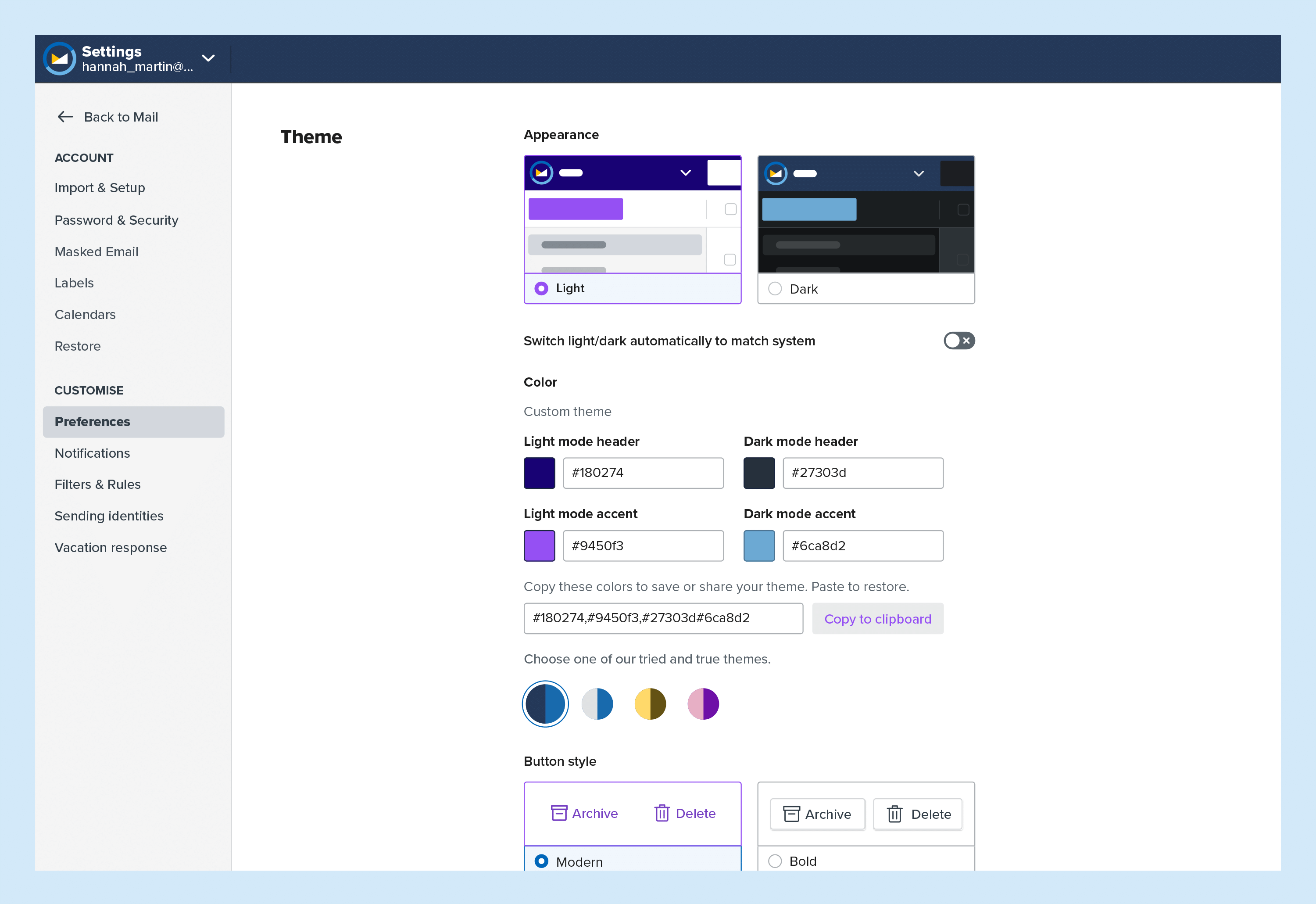 Bored of blue? Fastmail is now customizable to fit your style and needs.