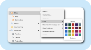 Adding color to your Fastmail routine helps boost memory and productivity when specific messages correspond with assigned color meaning. It is a fun way to express yourself while brightening up your inbox. Hover over any folder in your list, click the three dots that appear, and choose a color that highlights the importance of that folder. For emails that require quick action, try creating an “Urgent” folder and assign the color red.