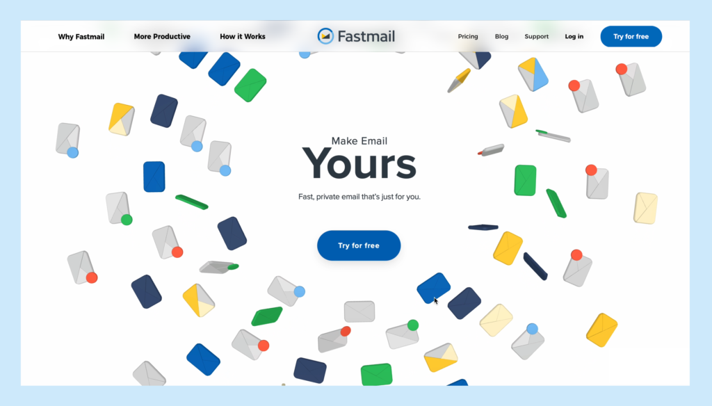 One unique aspect of this refreshed look is the modern three-dimensional design elements we’ve brought in to highlight our updated messaging. With these elements, the new marketing website tells the powerful story of the choose-your-own-adventure approach Fastmail takes to customer workflow.